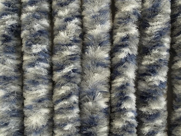 Bejárati ajtófüggöny 4 cm széles műanyagsínre szerelve. Fehér/ezüst színárnyalat.