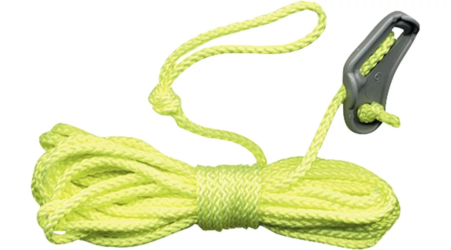 Egyik végén beakasztófüllel szerelt sátorfeszítő zsinór, amelyet a hagyományos háromlyukas feszítő háromszöggel lehet feszesre húzni.