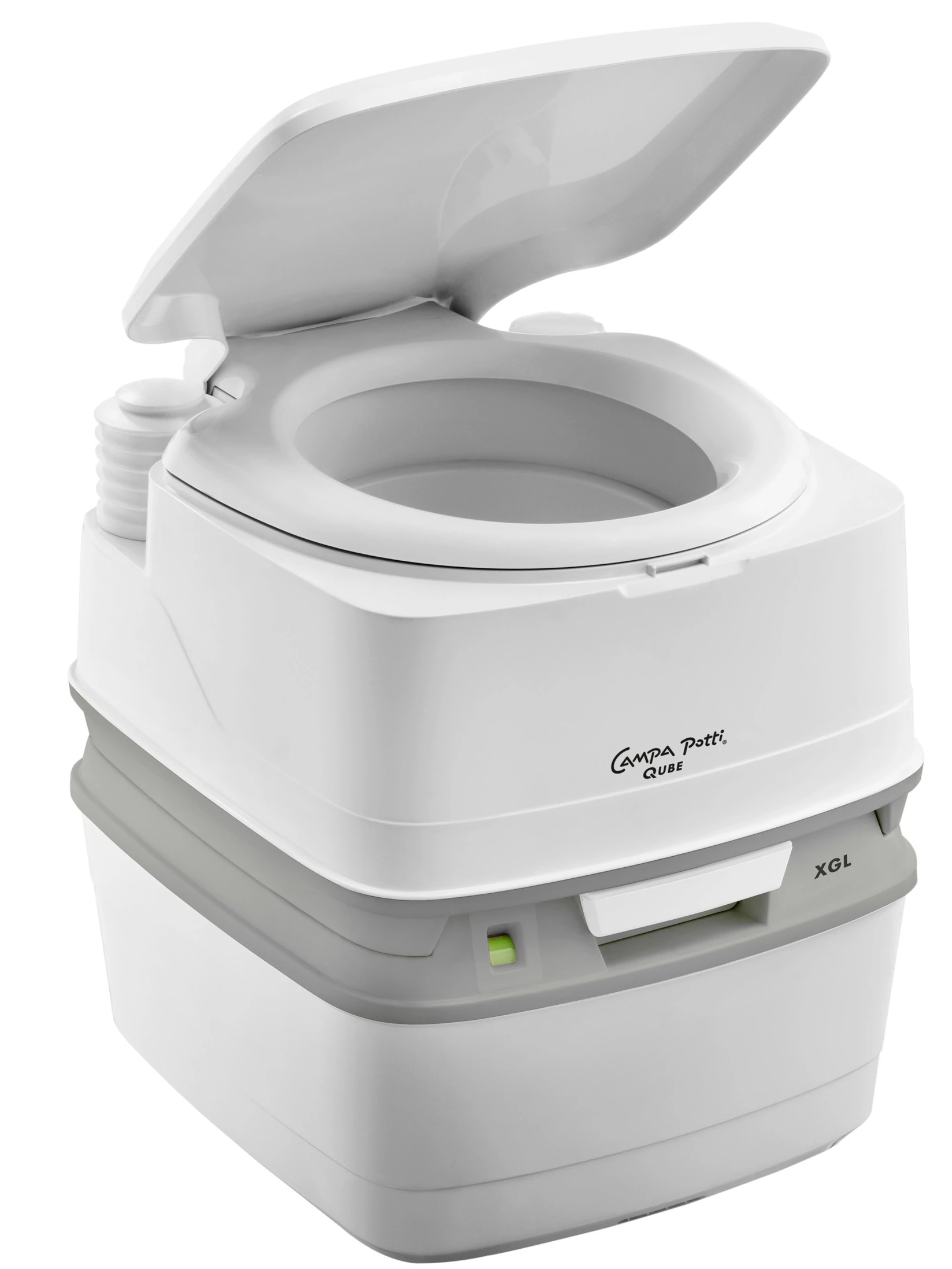 A Campa Potti Qube XGL csatornahálózattól és vízrendszertől független, vízöblítésű, hordozható szobai toalett. Szagmentesen záródó, higiénikus kialakításának eredményeként szobai használatra tökéletes. Elegáns, csillogó fehér színben kapható. Magassága megegyezik a háztartásban megszokott fajansz-WC méretével. Emésztő-tartálya szintkijelzős, amely mutatja mikor kell üríteni a tartályt. Fő jellemzők:
