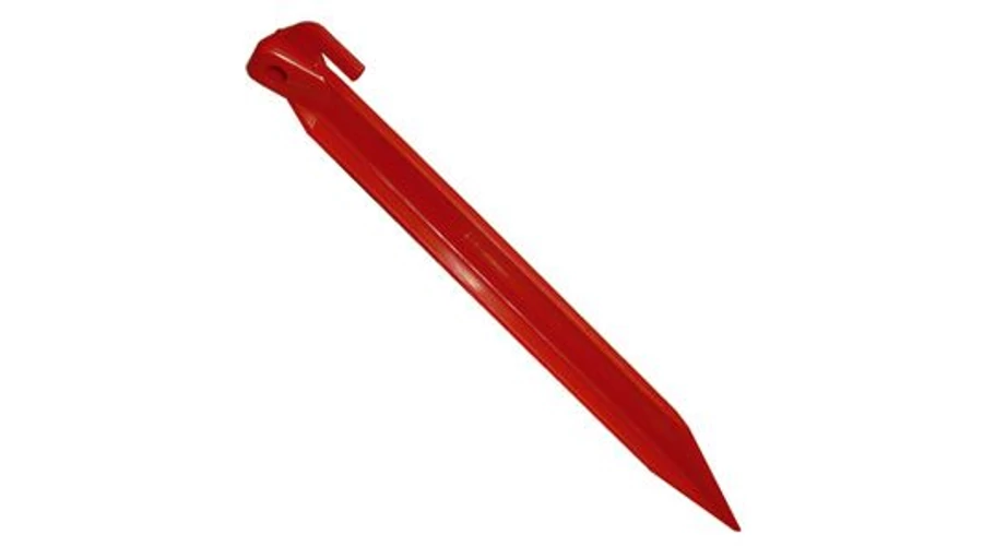 23 cm hosszú műanyag cövek normál talajhoz, piros színben. Egy csomagban 5 darab van.