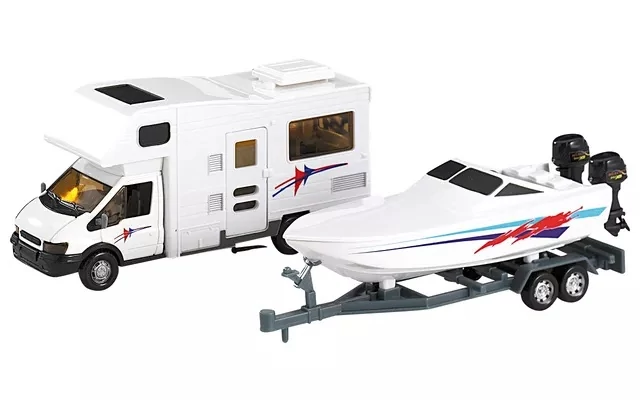 Játék lakóautó nyitható ajtóval és beépített mosdóval - műanyag/fém. Mérete kb. 17x6x6 cm, méretarány: 1:32.