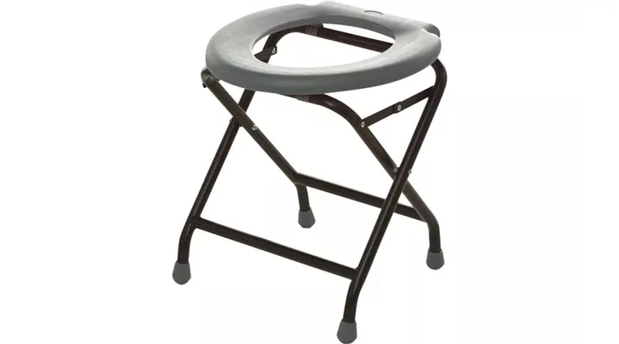Összecsukható, hordozható zacskós toalett szürke ülőkével.