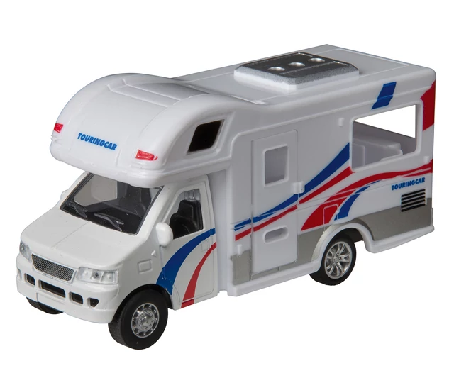 Játék lakóautó nyitható ajtóval és beépített mosdóval - műanyag/fém. Mérete kb. 17x6x6 cm, méretarány: 1:32.