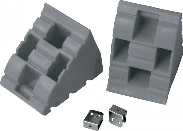 Szintezőék, szürke. Blokkolja a kerekeket hosszabb leállásnál. Megfelelő kiegészítője a Level Up szintezőnek. A lépcsőzetes kialakítású szintezőékre felhajtva, a kialakított menetbe illesztve, megtartja a járművet, így nem kell behúzni a kéziféket.