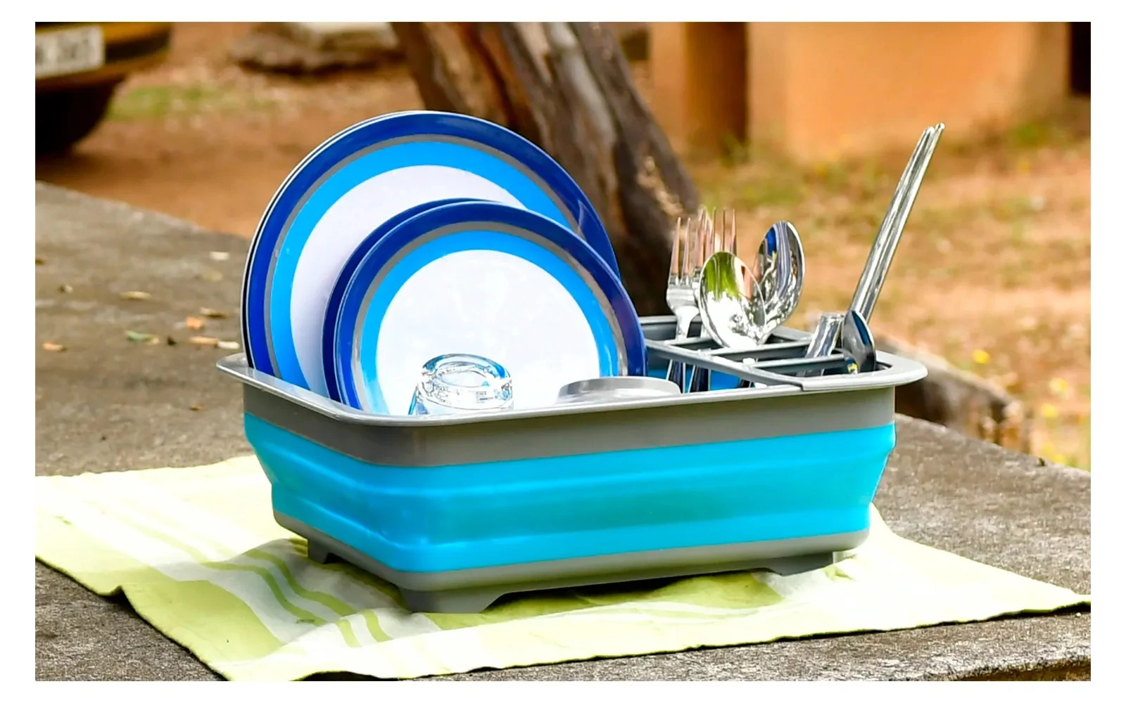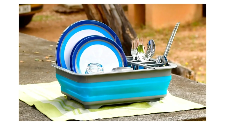 Vízkivezető nyílással, 10 literes űrtartalommal - ideális két ember számára mosogatáshoz és kisebb ruhák mosásához. Csukott állapotban 7 centiméter magas.