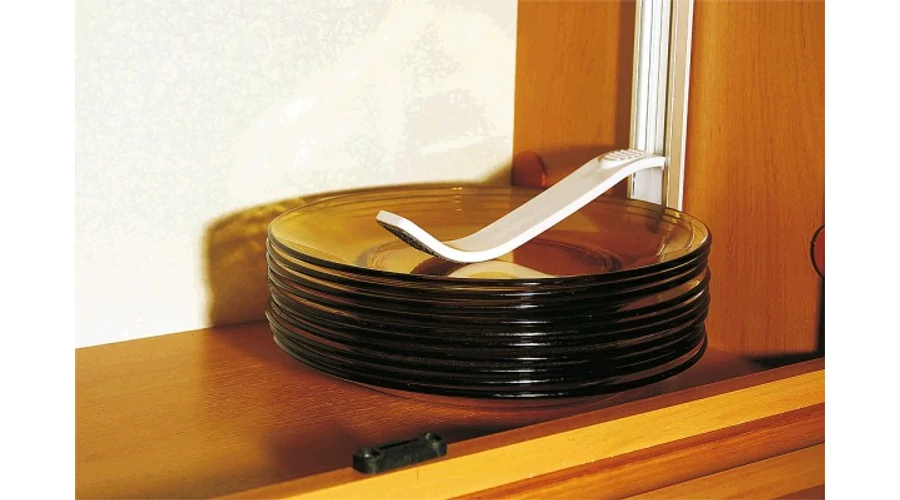 Konyhaszekrénybe szerelhető tányérrögzítő utazásokhoz vagy a praktikus és mutatós tároláshoz. Magasság: 25 cm, mélység: 20 cm.