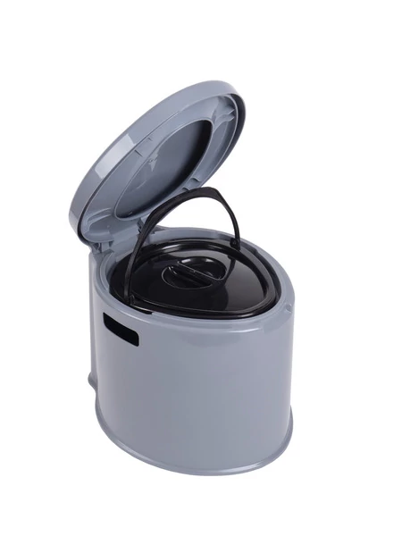 Modern vonalvezetésű hordozható vödrös WC. Használatához nincs szükség vízre, a kivehető fedeles vödör űrtartalma 7 liter. Teherbírása 100 kilogramm. Kialakításának köszönhetően stabil, a szélesített peremek miatt nehéz feldönteni. Az ülés és a fedél külön kezelhető.